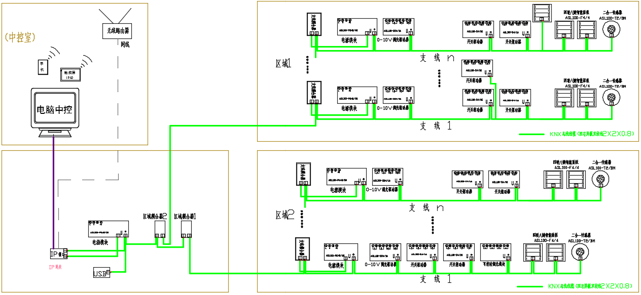 (4)系統采用分布分布式KNX總線結構,搭建簡單靈活,系統內各模塊互不影響,可獨立工作,可靠性更高;