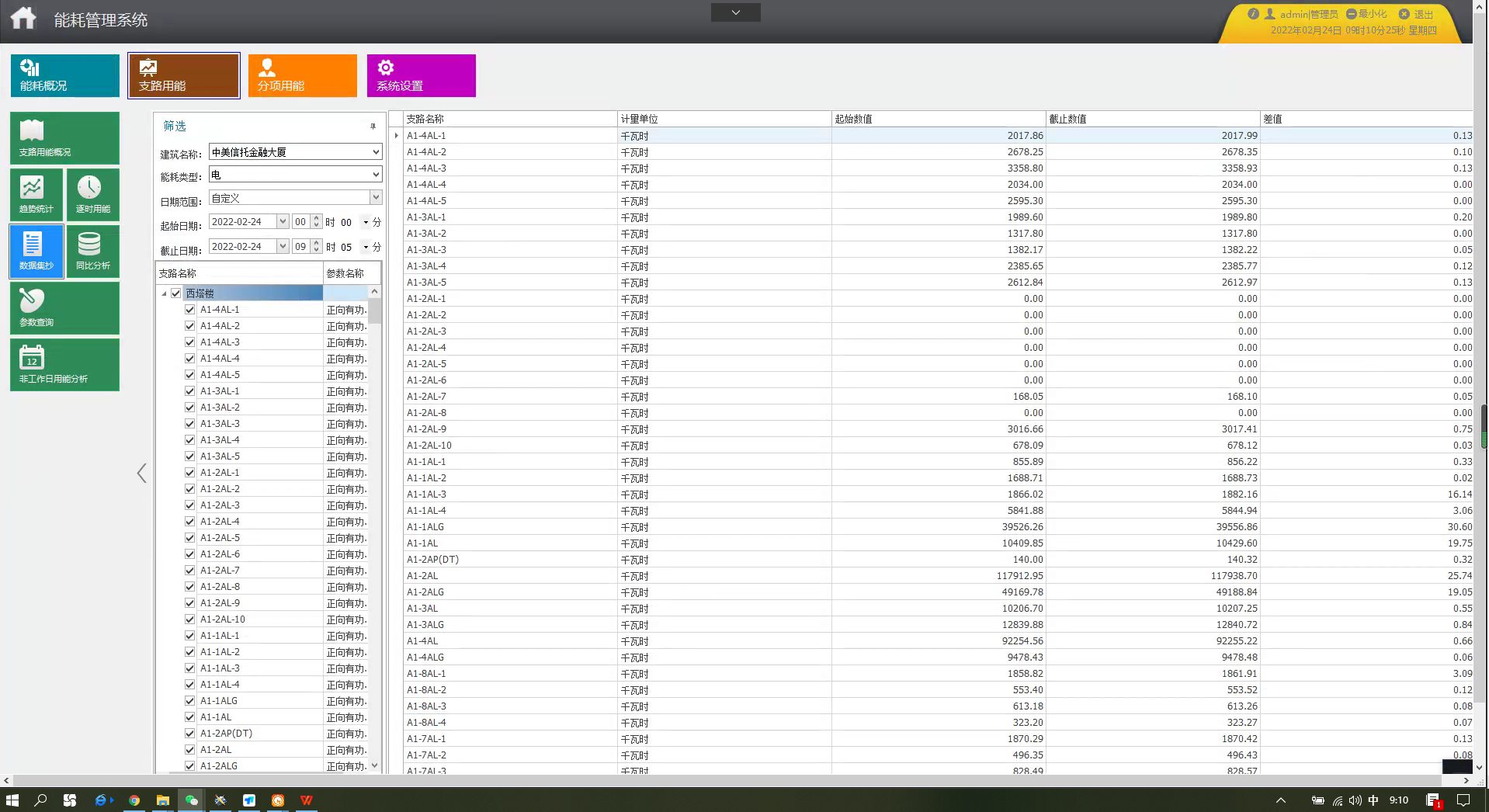 支路能耗概況