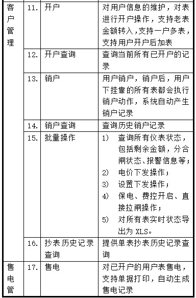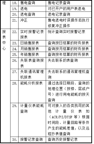 現場設備層主要為:遠程預付費電度表。這些裝置分別對應相應的一次設備安裝在電氣柜內,這些裝置均采用RS485通訊接口,通過現場MODBUS總線組網通訊,實現數據現場采集。 網絡通訊層主要為:通訊服務器,其主要功能為把分散在現場采集裝置集中采集,同時傳至站控層,完成現場層和站控層之間的數據交互。 站控管理層:設有高性能工業服務器、顯示器、UPS電源、打印機等設備。監控系統安裝在服務器上,集中采集顯示現場設備運行狀況,以人機交互的形式顯示給用戶。 智能儀表現場連接示意 現場智能裝置(遠程預付費電度表)以手拉手方式通過屏蔽雙絞線(RVVSP2*1.0)進行通訊連接,每根總線連接智能儀表數量在32只以內,不同種類的智能裝置連接在不同的總線上,然后將數據上傳至采集器,進而將數據上傳至監控主機。具體連接示意圖如下所示: 3 系統功能 整個系統軟件設計分為三個大塊,分別是集中抄表服務系統,遠程預付費電能管理系統,以及用戶查詢系統。 集中抄表服務程序常年運行,不間斷定時對所有表進行遠程抄表;遠程預付費系統包含所有開戶、售電、遙控及報表功能;用戶查詢機系統用于用戶查詢個人信息、充值和用電情況;另外還可配置手機端查詢網站,可用于用戶在手機網站終端上實時查詢個人信息、充值、遠程控制及每日用電情況,如果條件滿足,還支持用戶使用支付寶銀聯等方式遠程自助購電。 主要特點如下: u 快速配置,即裝即用:將電表和通訊管理機配置導入系統就可以使用; u 遠程集中抄表:免去人工抄表,電表狀態實時性最高可精確到3分鐘以內; u 支持單獨計價、多費率、階梯電價:可對每塊電表單獨設置電價、費率和階梯電價; u 遠程售電:財務集中管理,電量實時下發,并比對充值次數防止作弊; u 數據安全:網絡數據傳輸采用金融級的3DES加密算法,防止數據作弊竊電; 手機短信提醒:當金額不足或金額欠費,共三級u 預警,都可及時短信通知商戶; u 遠程控制:可對任意一塊電表執行遠程拉閘或保電等一系列遠程控制操作,方便管理; u 能耗分析及查詢:用戶和管理員都可查詢預付費表或各類接入的計量儀表每天的用能狀況; u 個人手機查詢網站:支持手機端用戶自主購電,自主查詢。 傳統的IC卡預付費售電管理系統實現了先交費后用電的管理模式,但由于抄收電表數據依賴于購電卡,用戶用電數據滯后于發生時間,不僅需要人工抄表,也無法有效進行用電管理、監控和實時控制。 利用遠程預付費電能管理系統,無需IC卡,可以實現計算機遠程集中抄表、實時監控、遠程充值和遠程控制,再通過預警信息和短信通知,以及手機網站,物管部門即可完成整個抄表、收費、控制和核查工作,實現高度信息化和自動化,大大提高用電營銷管理效率和水平,節約人力物力的同時,也提高了經濟效益,同時還具有防信息泄露防竊電的安全功能。 ①集中抄表服務系統 集中抄表服務程序包含三大模塊,除了常年運行的定時對所有儀表進行集中遠程抄表以外,還集成了報警短信發送服務,能將電費金額預警和欠費預警自動生成手機短信自發送給對應的用戶,該功能需要與硬件短信貓配合使用。系統默認半小時對所有表進行一次遠程集中抄表,時間間隔支持個性化配置。 ②遠程預付費電能管理系統 本系統分為五大模塊,分別是操作員登陸模塊、系統配置模塊、用戶(商鋪)管理模塊、售電管理模塊、報表中心模塊,系統大致運行和操作流程如下: 本系統所有的報表及記錄查詢,都支持excel格式導出的功能。 1.登陸管理:管理操作員賬戶及權限分配,查看系統日志等功能; 2.系統設置:對建筑、通訊管理機、儀表及默認參數進行配置; 3.用戶管理:對商鋪用戶執行開戶、銷戶、遠程分合閘、抄表導出及記錄查詢等操作; 4.售電管理:對已開戶的表進行遠程售電、退電、沖正及記錄查詢等操作; 5.報表中心:提供售電財務報表、用能報表、報警報表等查詢。