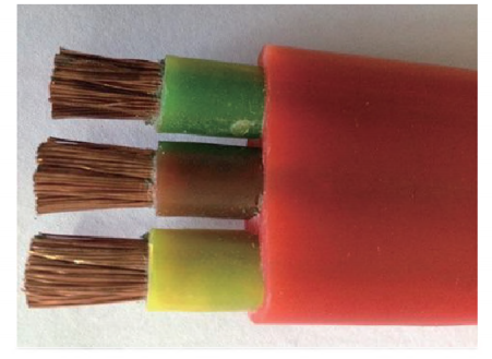 電線電纜主要包括普通電線電纜、阻燃電線線纜和阻燃耐火電線電纜。其中,普通電線電纜有包括聚氯乙烯電線電纜、交聯聚乙烯電線電纜(如圖1)和橡膠電線電纜(如圖2)。特別是橡膠電纜,其優點在于能夠承受住極嚴寒環境的考驗,而且具有非常好的彎曲性,能夠滿足高差較大甚至是垂直敷設要求。同時,橡膠電纜還大多應用于移動電氣設備的電器線路中。交聯聚乙烯電線電纜的特點是在實際工作過程中,即使發生燃燒也不會產生有毒氣體,缺點是并不具有阻燃性。因此,交聯聚乙烯電線電纜大多應用于對環境清潔度有較高要求的工業環境中;麋氯乙烯電線電纜是現階段應用較為廣泛的一種電線電纜,但其缺陷在于一旦發生燃燒會產生大量有毒氣休,因此不適用于人口密集的場所。