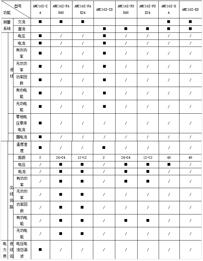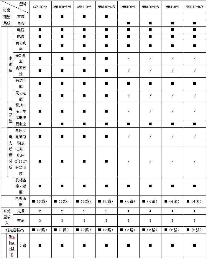 遙測(cè):三相電壓、電流、有功功率、無(wú)功功率、視在功率、功率因數(shù)、有功電能、無(wú)功電能、電纜溫度,系統(tǒng)頻率、零序電流、零地電壓、漏電流、機(jī)柜溫度、機(jī)柜濕度、開關(guān)狀態(tài)、電壓/電流諧波含量、電流/功率;
