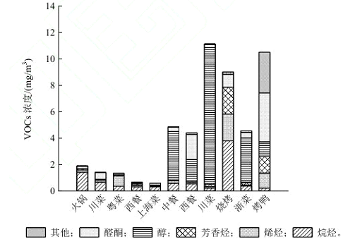 1)本文綜述了餐飲油煙VOCs的排放特征。結(jié)果表明,不同烹飪風(fēng)格和烹飪原料會導(dǎo)致VOCS排放有很大差異。不同菜系烹飪油煙 VOCs排放種類和濃度有明顯差異。典型的非燒烤類菜系中以川菜污染排放較為嚴(yán)重,主要以烷烴和烯烴為主。燒烤類菜系以芳香烴類化合物排放為主。不同食用油中,大豆油污染排放濃度較高,玉米油則相對健康。目前,國內(nèi)外對餐飲油煙VOCs排放特征的研究取得了大量成果,但油煙 VOCs 采樣方式與排放量的估算仍需進(jìn)一步規(guī)范。相關(guān)部門要加強(qiáng)小規(guī)模及未注冊餐飲業(yè)的排放監(jiān)測,獲得相關(guān)排放系數(shù),提高排放量估算的準(zhǔn)確性,對制定相關(guān)排放標(biāo)準(zhǔn)和控制措施具有指導(dǎo)意義。