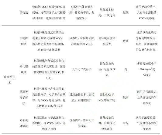 2)目前我國餐飲油煙凈化設(shè)備主要針對油煙顆粒物的去除,但對于油煙VOCs的末端