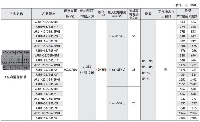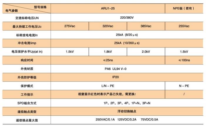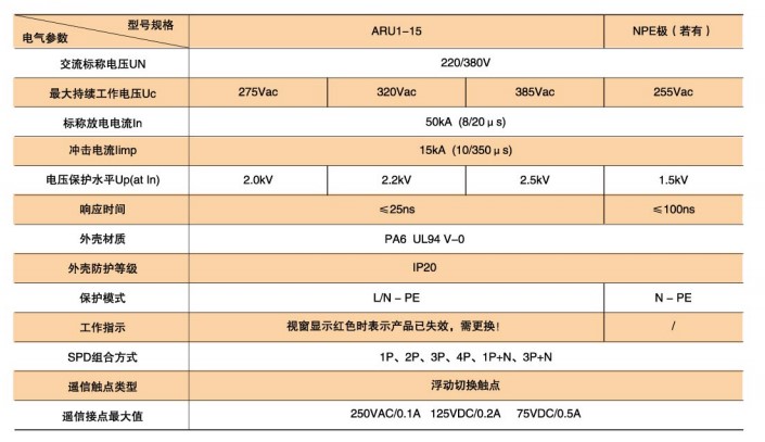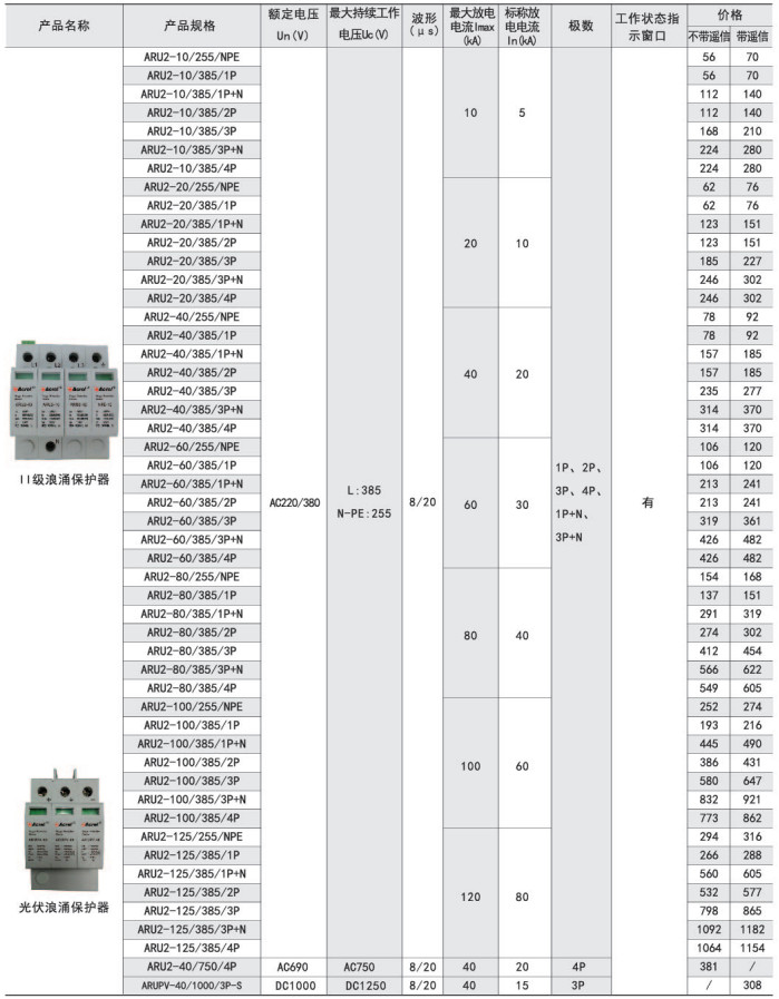 ARU系列浪涌保護器,也叫防雷器、避雷器,是一種為各種電子設備、儀器儀表、通訊線路、低壓電氣線路提供安全防護的電子裝置。適用于交流50/60Hz,額定電壓380V的供電系統或光伏系統,對間接雷電和直接雷電影響或其他瞬時過電壓的電涌進行保護,滿足家庭住宅、第三產業及工業領域電涌保護的要求,具有相對相,相對地,相對中線,中線對地及其組合等保護模式。