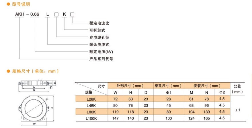 3、AKH-0.66/L剩余電流互感器