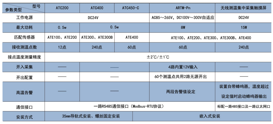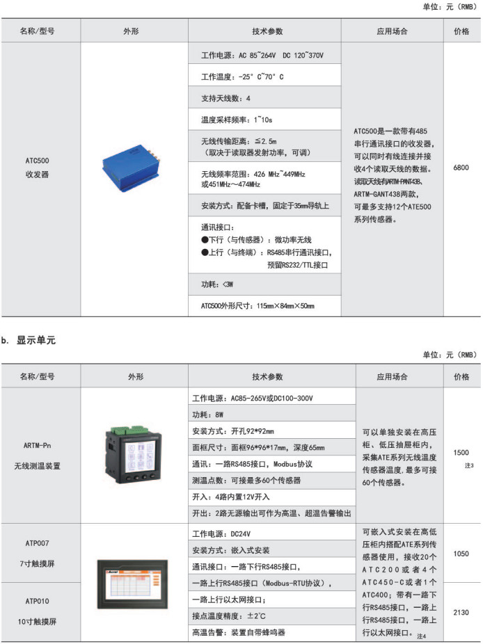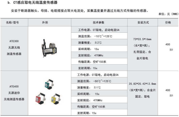 綜上所述,確定型號為:無線測溫裝置:ARTM-P9-3001臺;無線測溫傳感器:ATE3009個