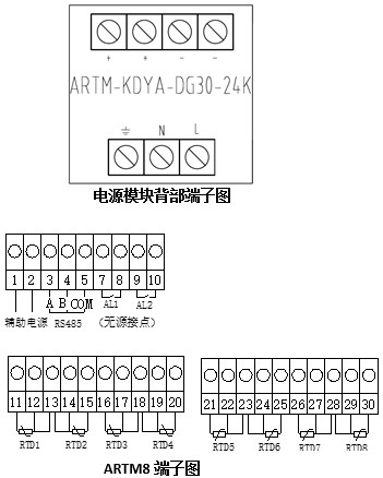 ARTM8溫度巡檢儀:ARTM系列溫度巡檢測控儀適用于一路或多路溫度的測量和控制,主要應用于火電廠、水電站等場合的溫度巡檢測量及控制。測量8通道Pt100溫度,也可以屏蔽其中任意通道。每一通道溫度測量對應2段報警,繼電器輸出可以任意設置報警方向及報警值。