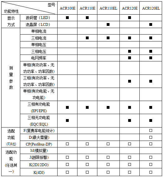 注:“■”為標配功能,“□”為選配功能。