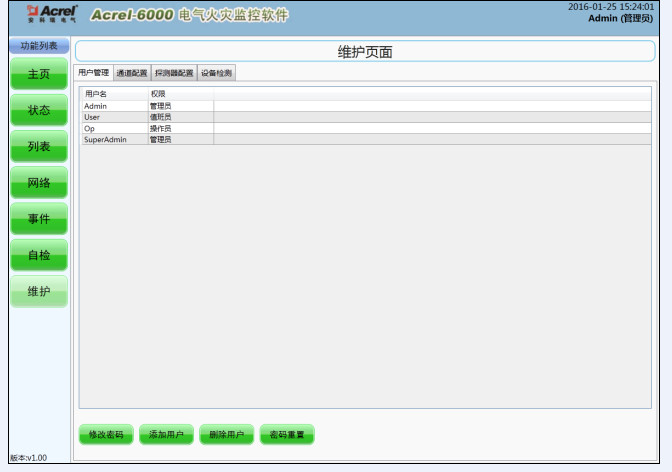 該界面可添加新的“操作員”和“值班員”權(quán)限的新用戶,也可刪除這兩個級別的現(xiàn)有用戶,該管理功能只有“超級管理員”和“管理員”可進(jìn)行操作。