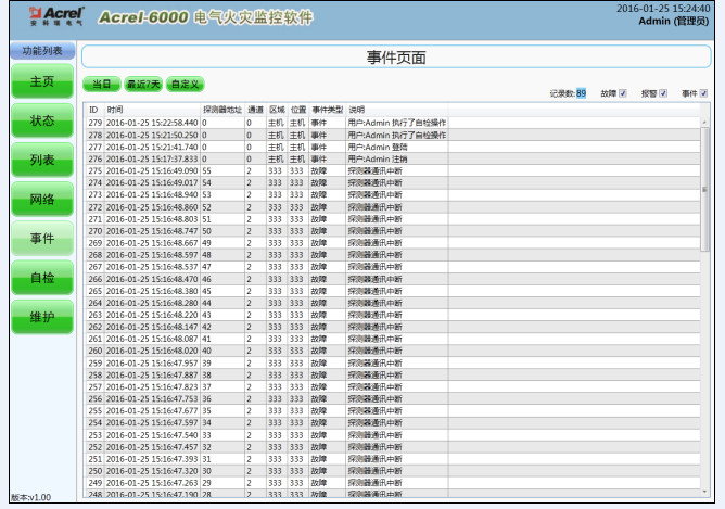 用戶于該界面內(nèi)可查詢?nèi)我鈺r段內(nèi)相應(yīng)報(bào)警或動作類型下的記錄,各級操作權(quán)限均可查看該界面的信息。