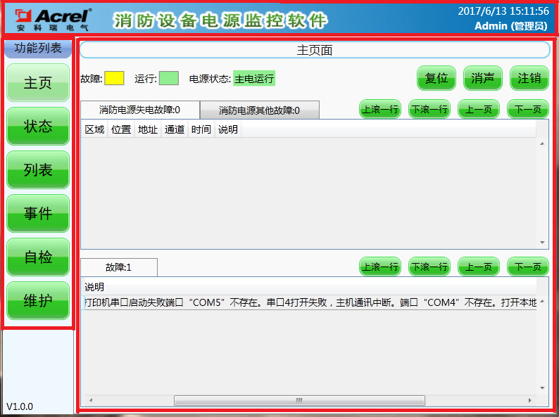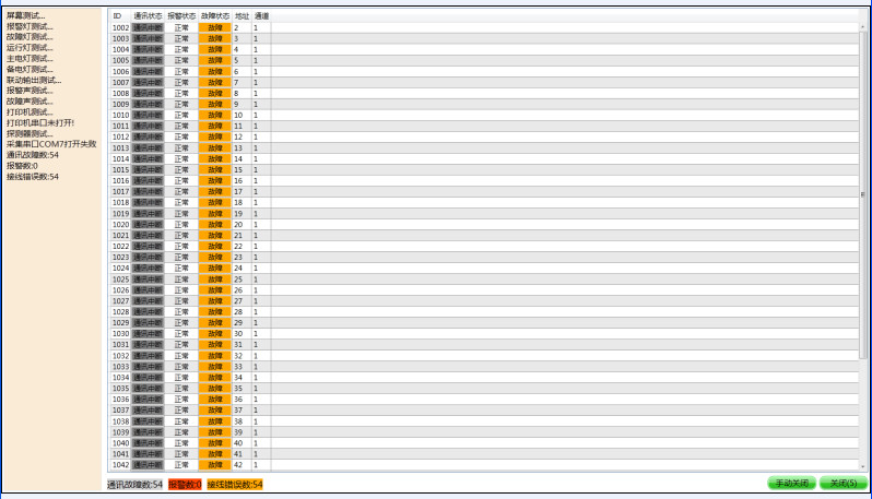 該檢測(cè)功能為“管理員”和“操作員”方可進(jìn)行的操作功能,主要用于設(shè)備自檢和對(duì)監(jiān)控系統(tǒng)柜體面板指示燈的手動(dòng)檢測(cè)。