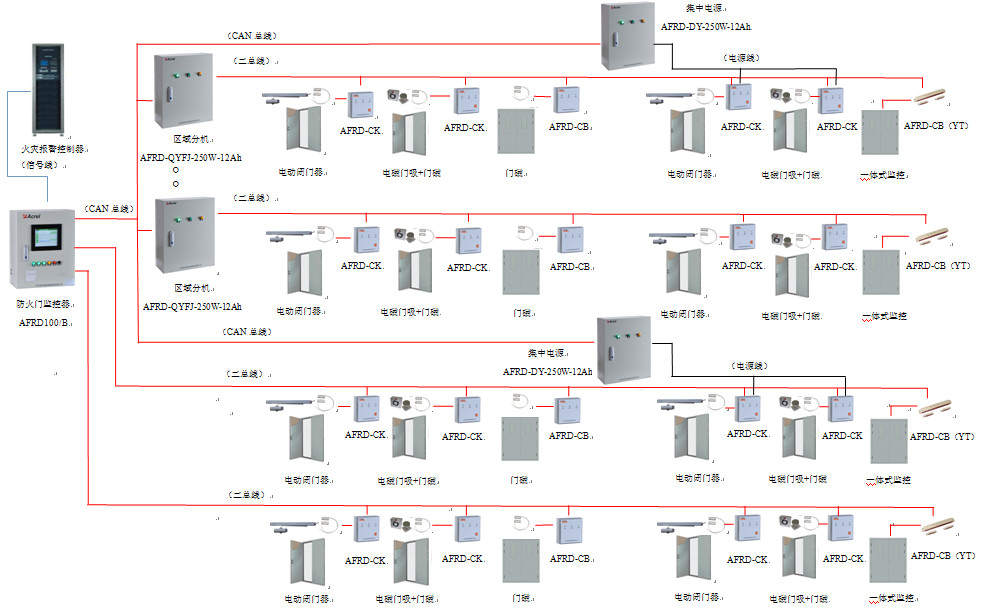 | 常開單門 | AFRD-CK1 | 接收常開單扇防火門的狀態信息并將其反饋至監控器,同時將監控器的指令傳遞給電動閉門器、電磁釋放器 |