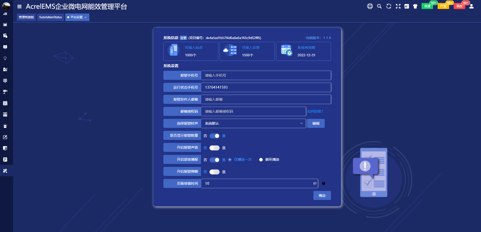 平臺接收到報警信息后,可通過短信或者APP推送報警信息,相關報警閾值可根據要求靈活設置,并對報警設置不同級別。
