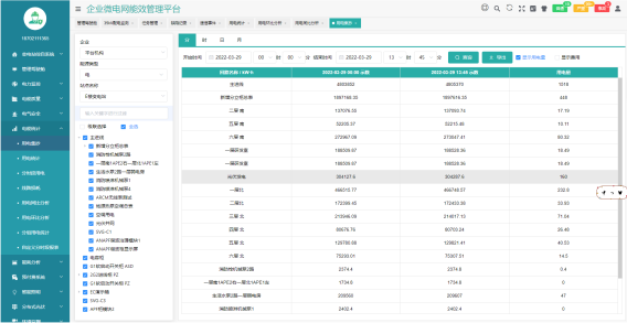 平臺具備定時抄表匯總統計功能,用戶可以自由查詢平臺正常運行以來任意時間段內各配電節點的用電情況。