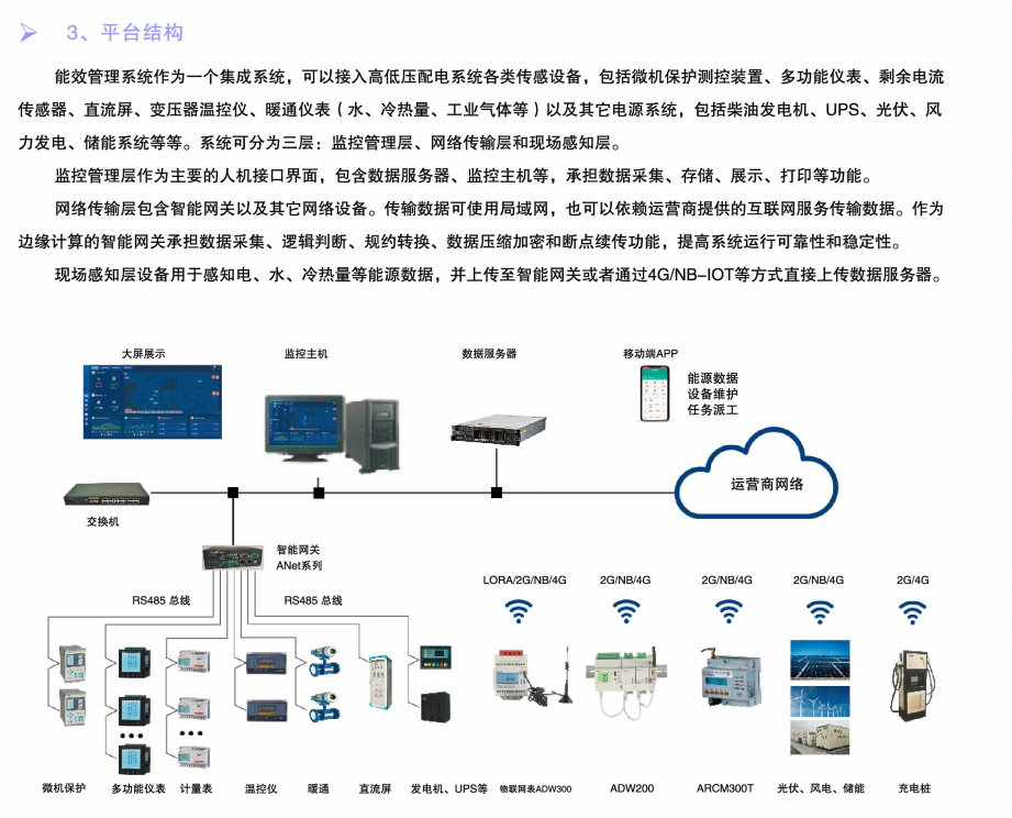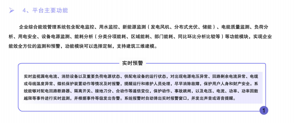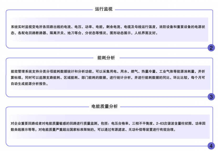 企業綜合能效管理系統是為企業提供能耗管理、電能質量和用能安全監測的整套解決方案,系統可采集多種類型能源(電、水、天然氣、工業氣體、冷熱量等)數據,并對能源消耗進行分析,抱愧分類分項能耗、區域能耗、部門能耗數據以及用能安全監控,協助企業消除能源消耗盲區,提高配電系統運行和用能安全,為企業降低運營成本。